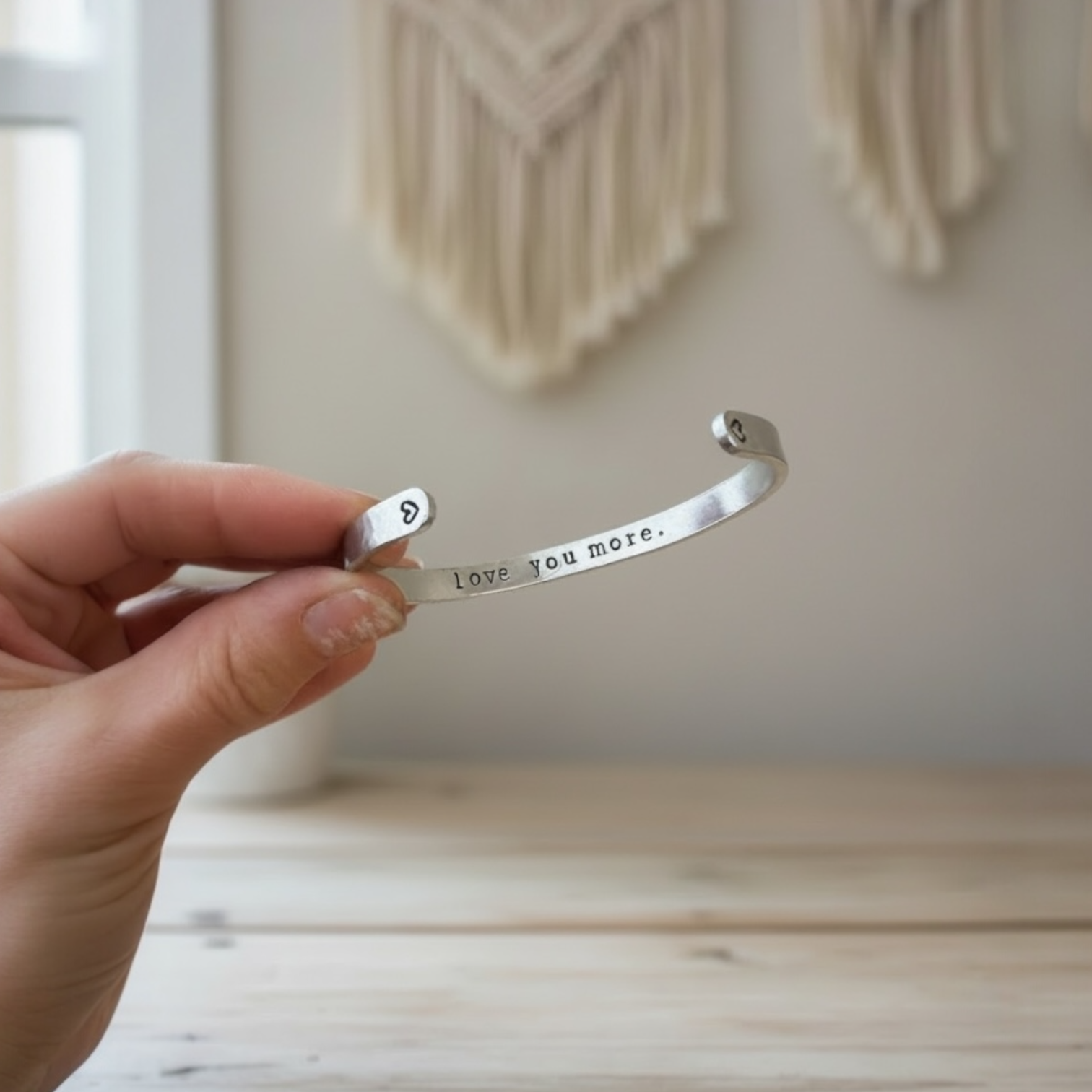 This is a hand textured, hand stamped aluminium bangle.